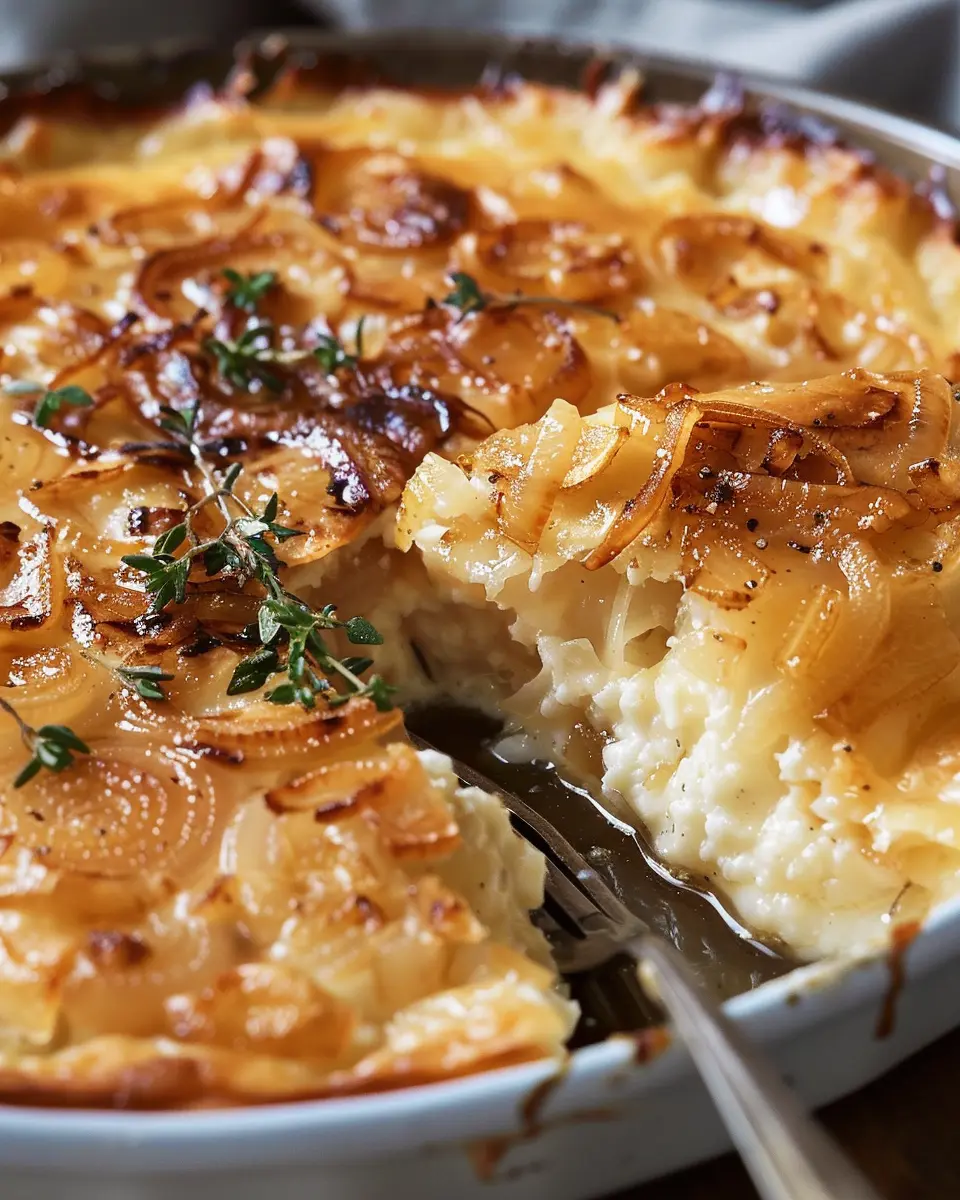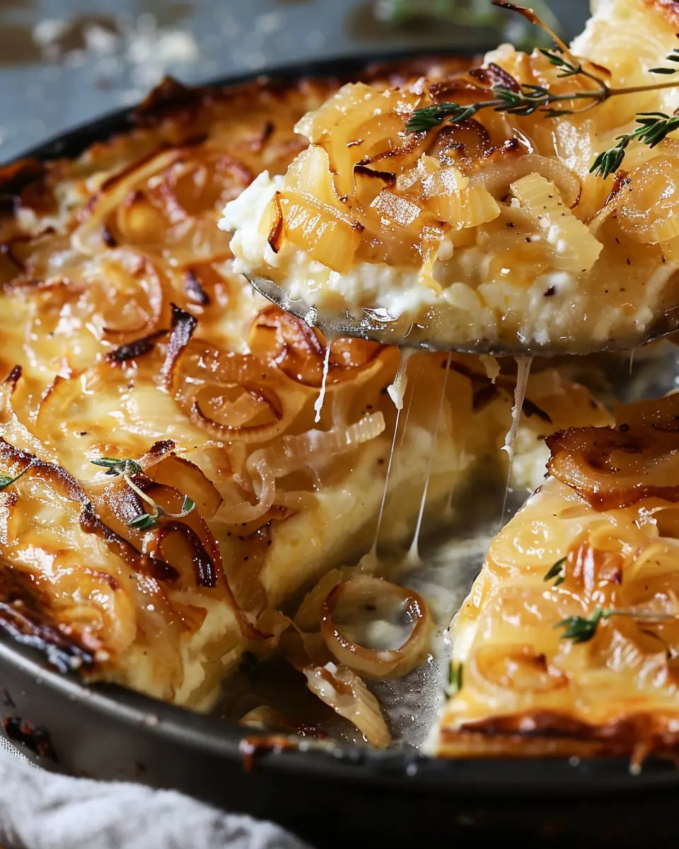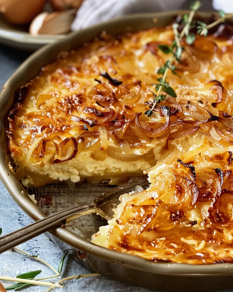 A deliciously easy recipe for caramelized onion and Gruyère cottage cheese bake, perfect for any occasion.