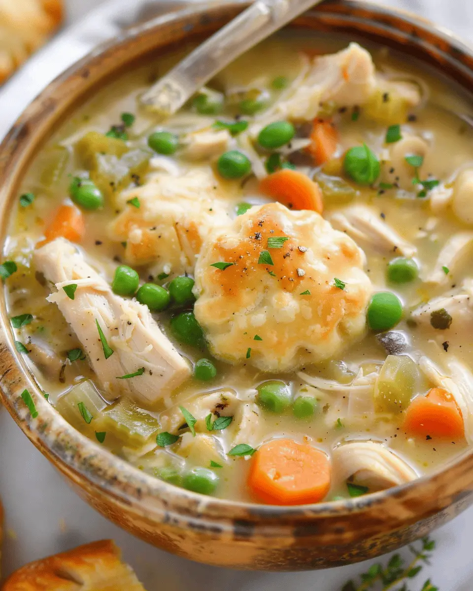 A warm and comforting chicken pot pie soup that brings the flavors of the classic dish into a hearty soup.