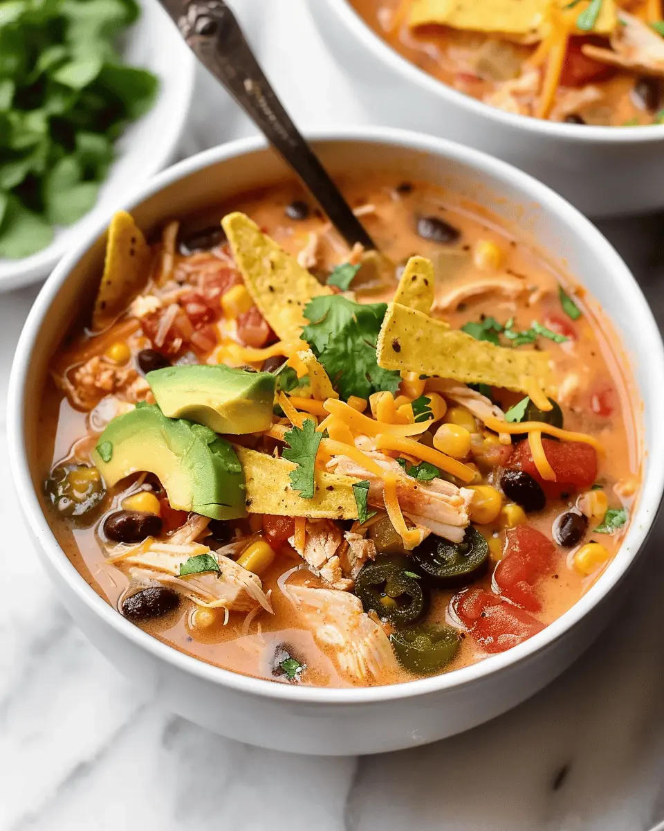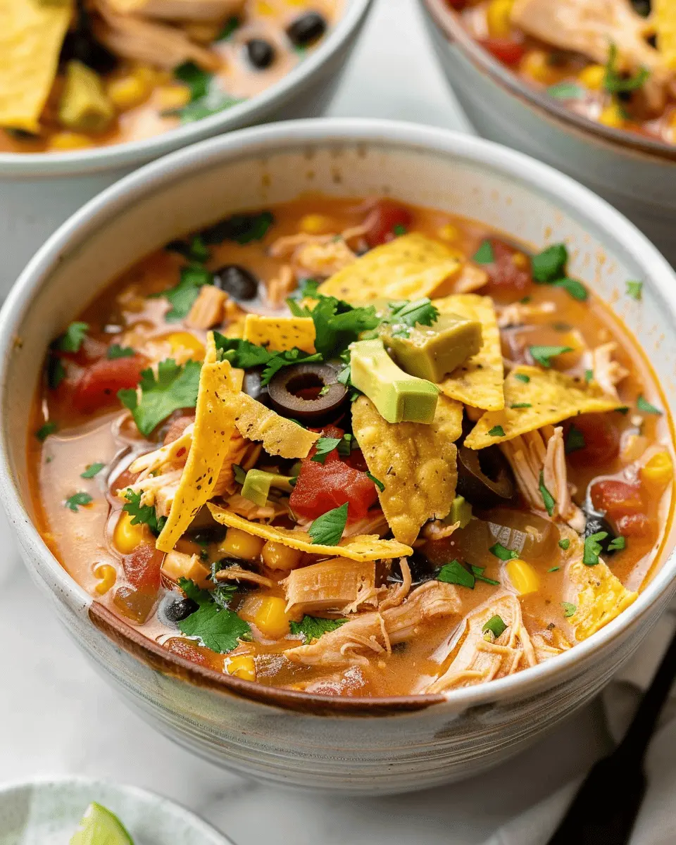 Plus, you can customize it endlessly—add beans, corn, or avocado for an extra kick. Want to make it your own? Check out more variations on chickensouprecipes.com or souplover.com. Dive into this delicious experience tonight; your taste buds will thank you!