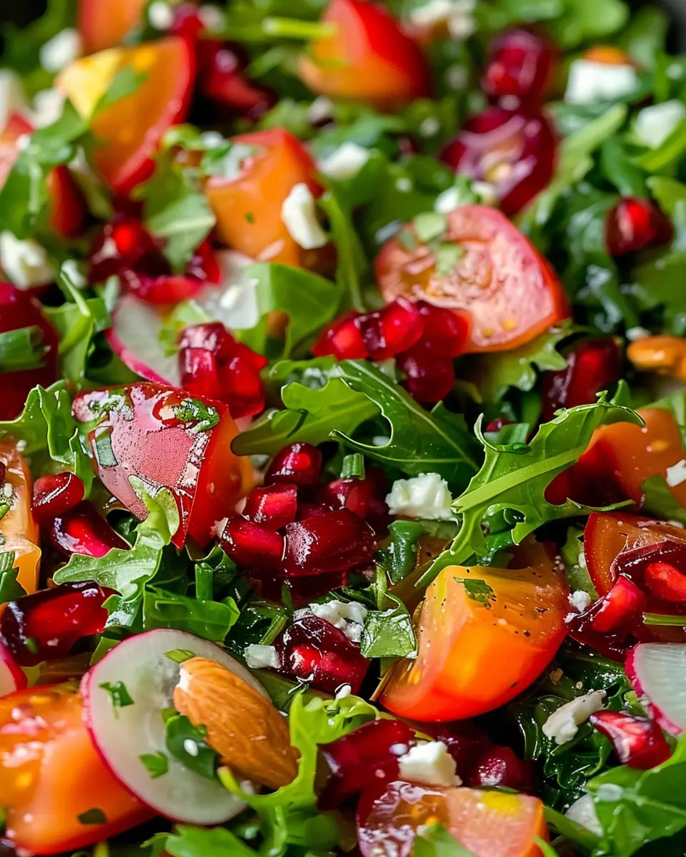 - Fruits: Add seasonal favorites like pomegranate seeds, mandarin orange segments, and diced apples. They’ll give your salad a juicy sweetness.