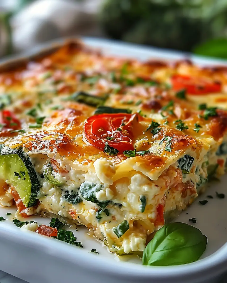 A delightful and nutritious bake featuring cottage cheese and fresh vegetables, perfect for a quick meal.