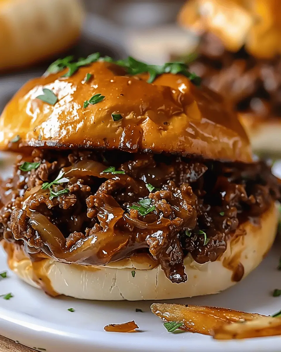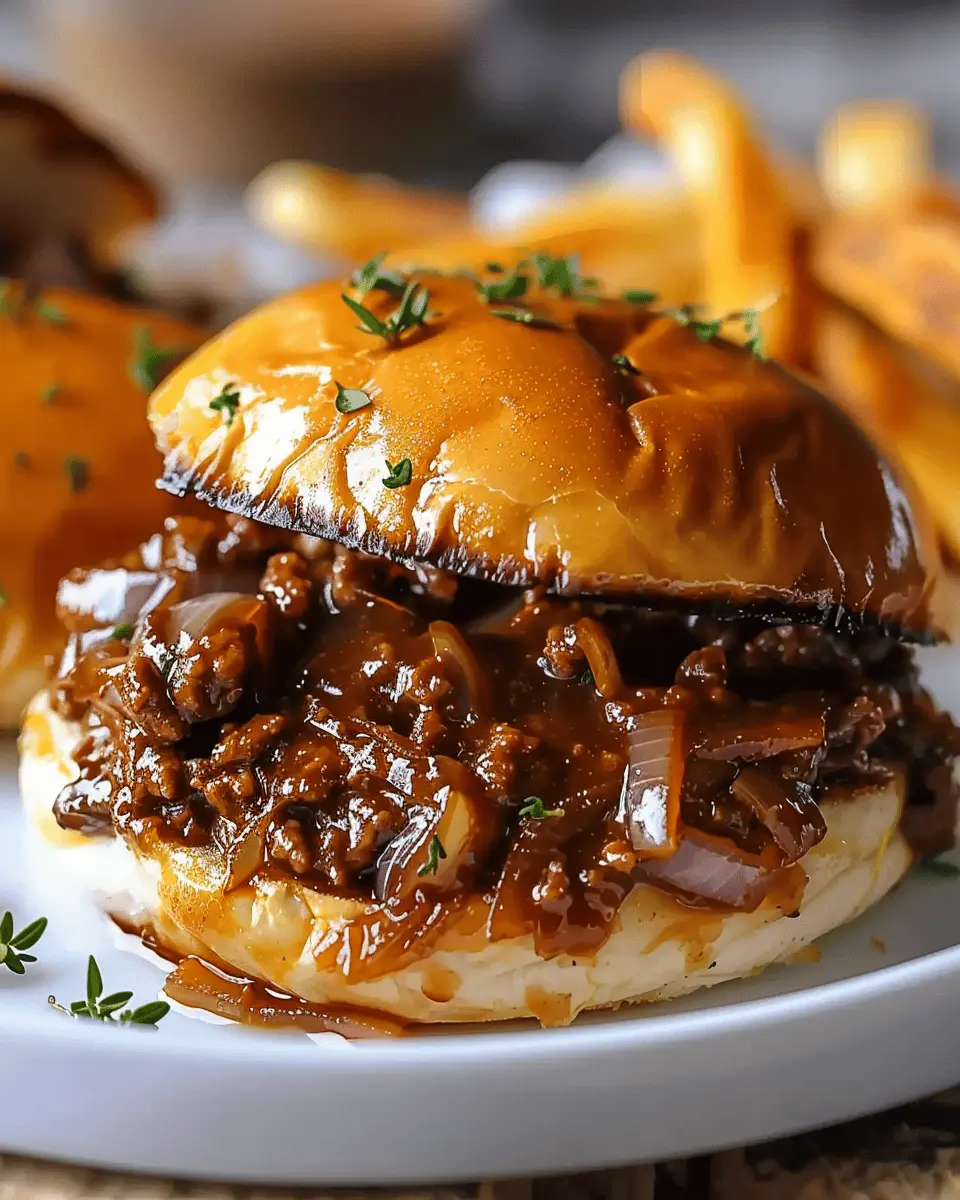 PrintFrench Onion Beef Sloppy Joes: Juicy Flavor for Easy Meals