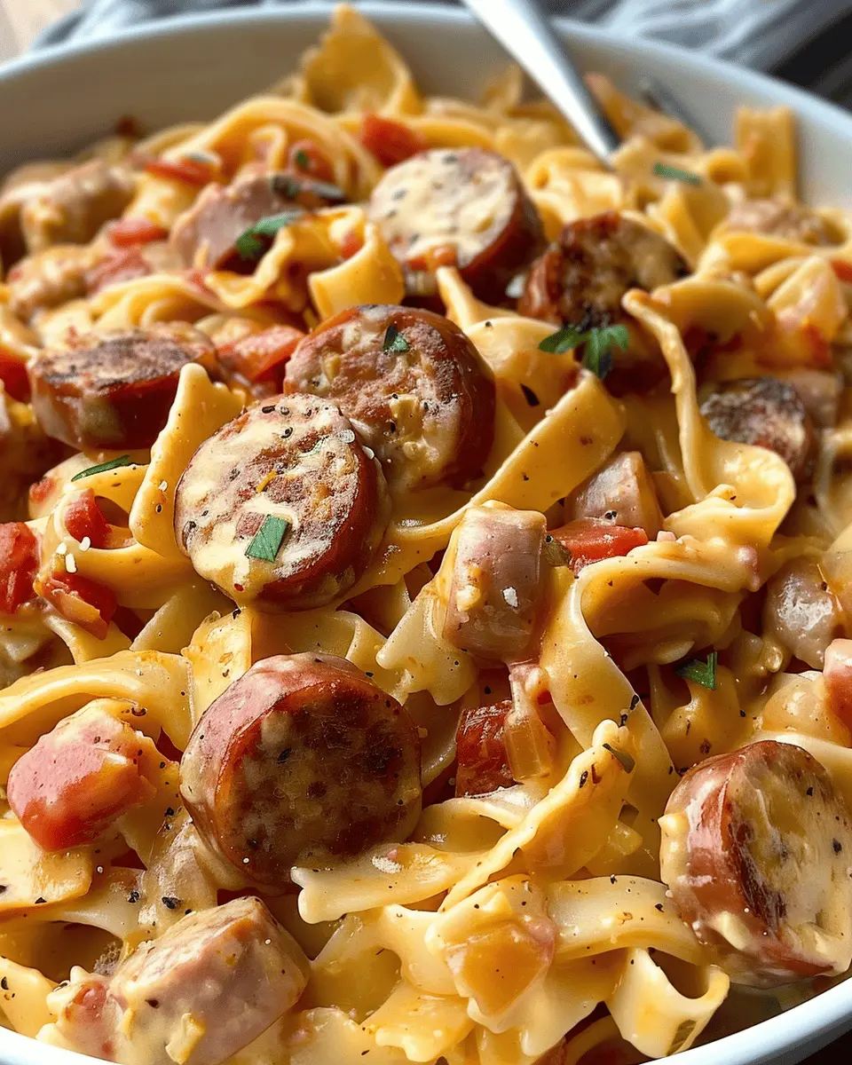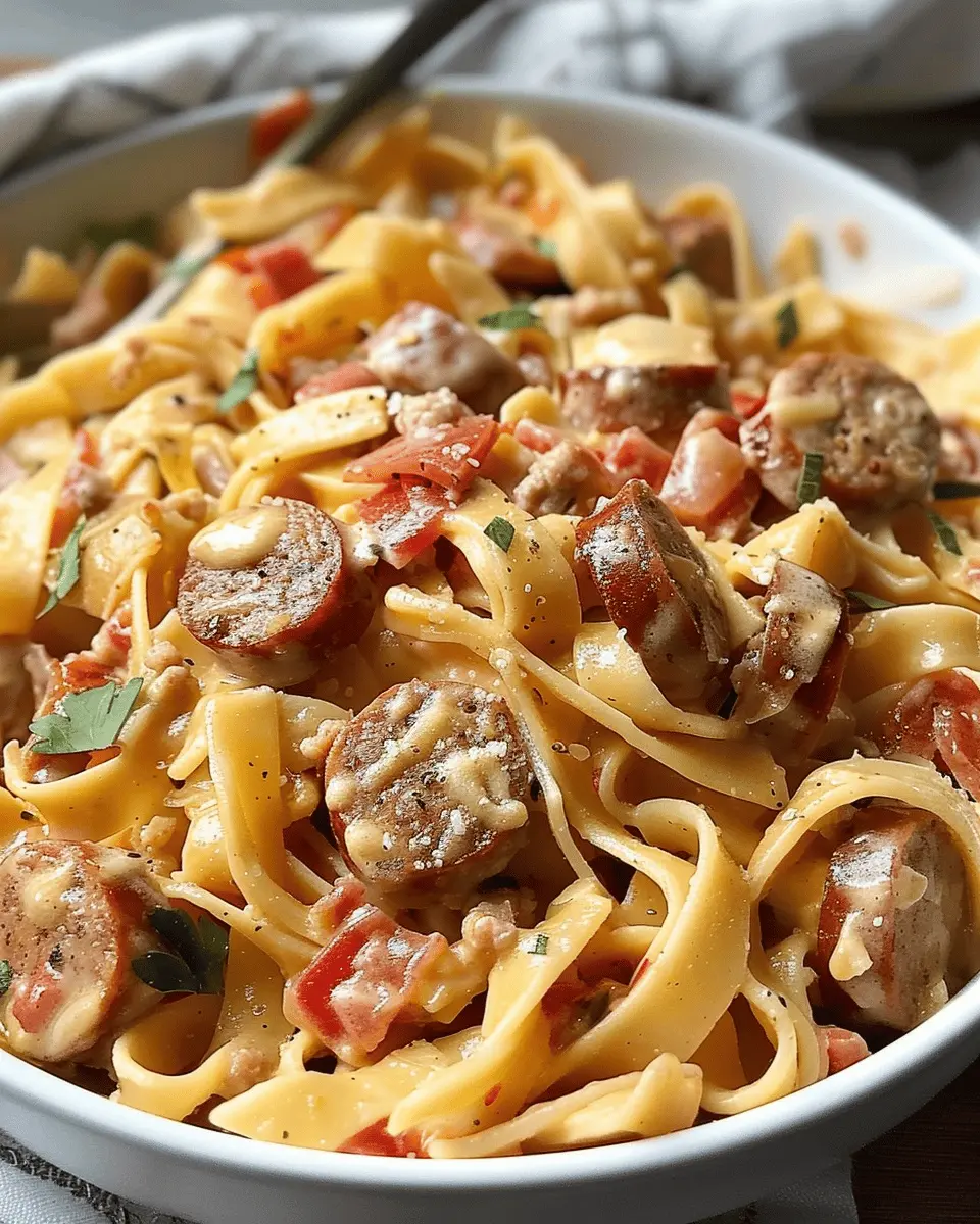 PrintOne Pot Creamy Cajun Sausage Pasta: Easy Comfort Food Delight
