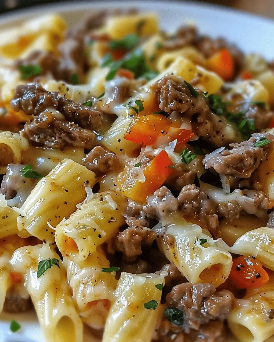 Indulge in this creamy and cheesy Philly Cheesesteak Pasta, a delicious twist on the classic sandwich.