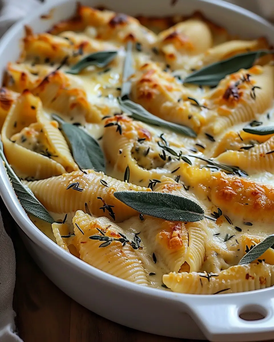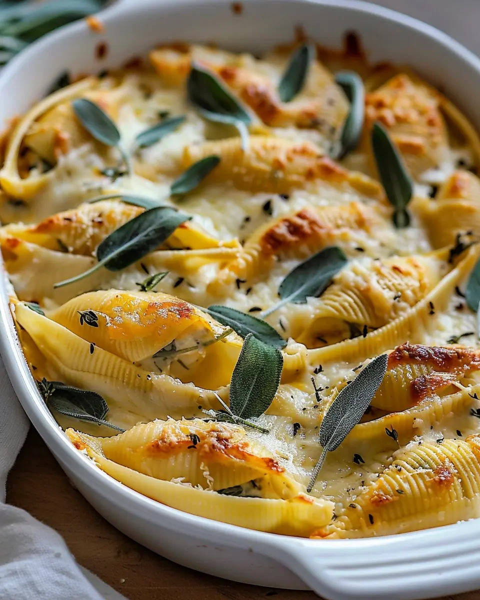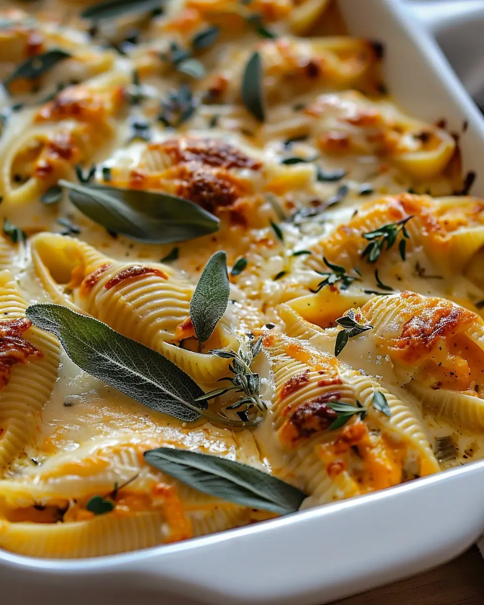 Pumpkin & Gouda Stuffed Shells With Brown Butter & Sage Alfredo Sauce