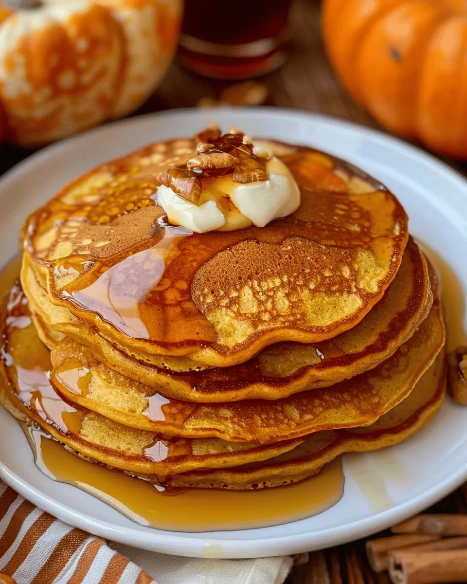 In summary, pumpkin Greek yogurt pancakes are not just a delicious way to start your day; they are a nutritious choice packed with protein and essential vitamins. With their fluffy texture and warm, comforting flavor, these pancakes can easily become a fall favorite in any breakfast rotation. Want to switch things up? Try topping them with a drizzle of maple syrup or a dollop of Greek yogurt for an extra creamy finish.