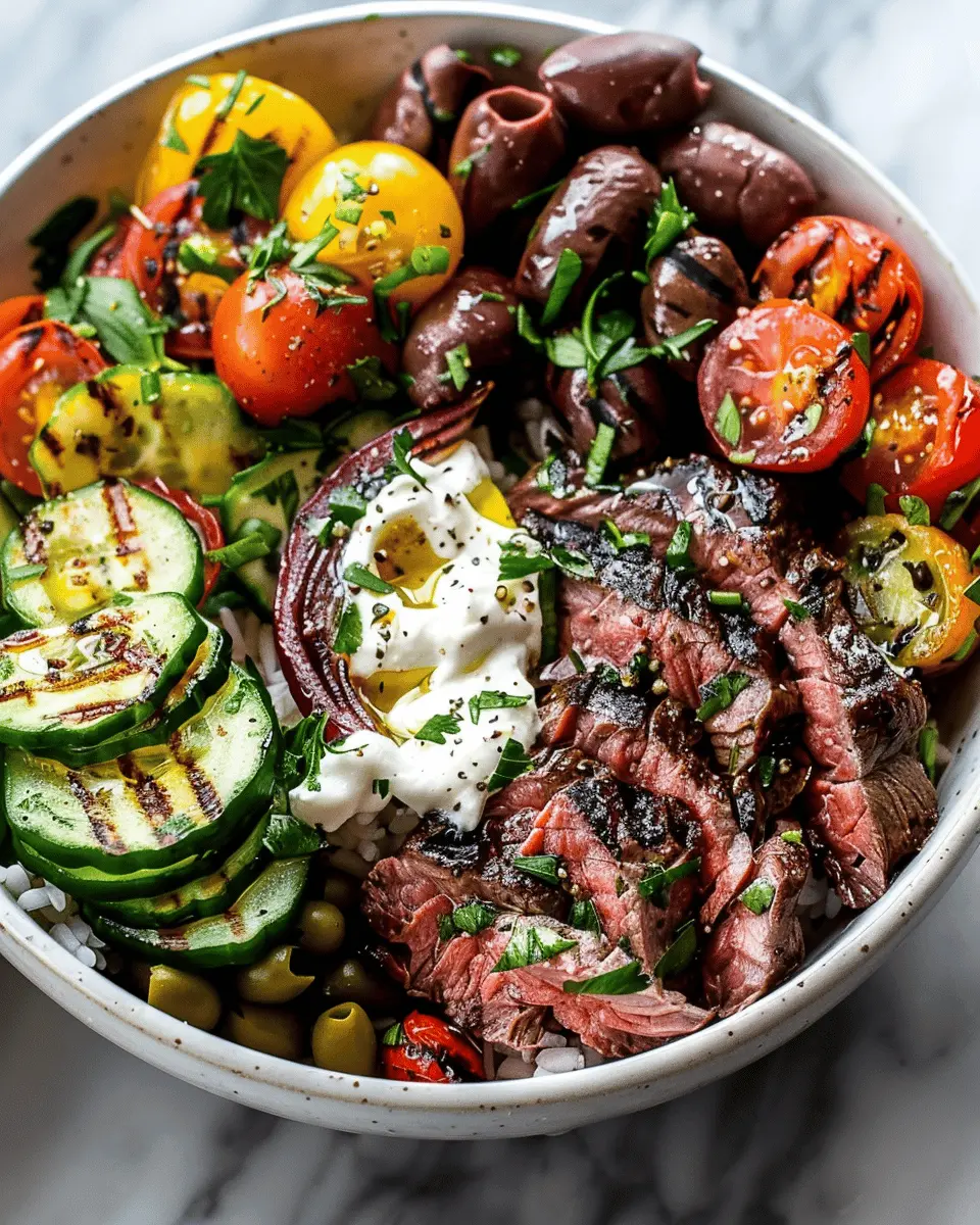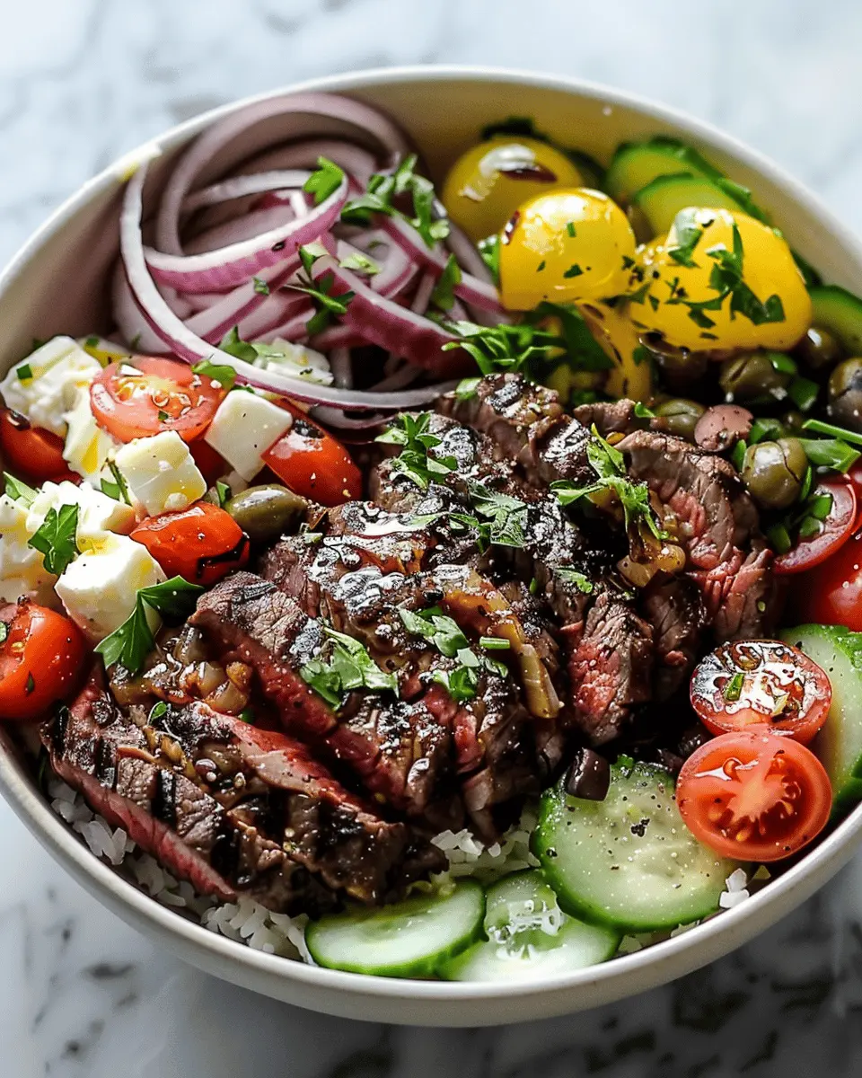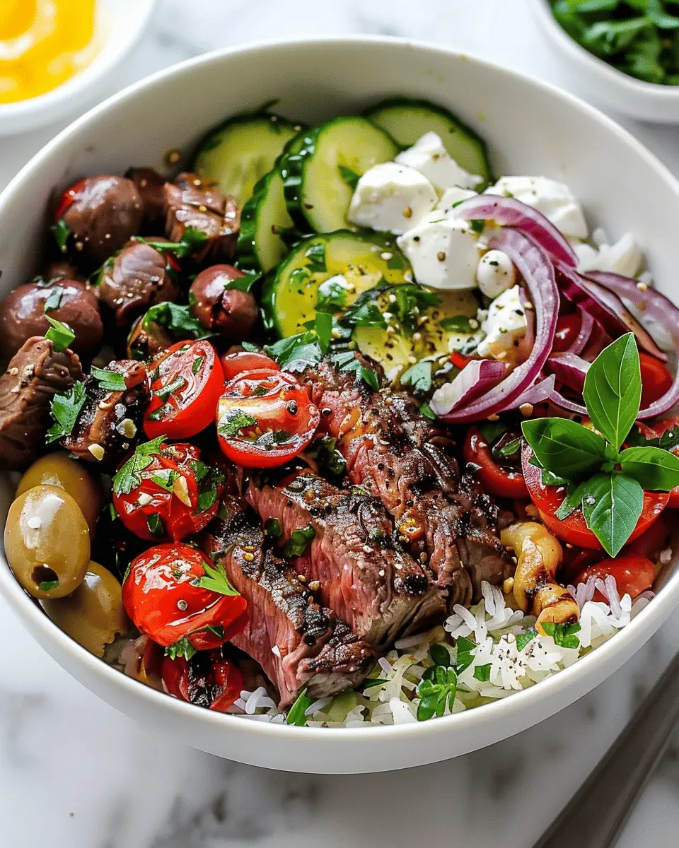 PrintQuick Easy Mediterranean Steak Bowl: A Juicy Twist on Flavorful Eating