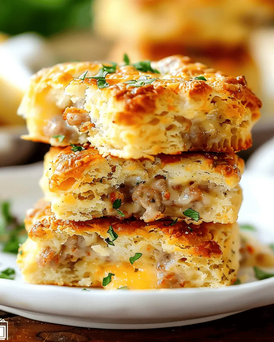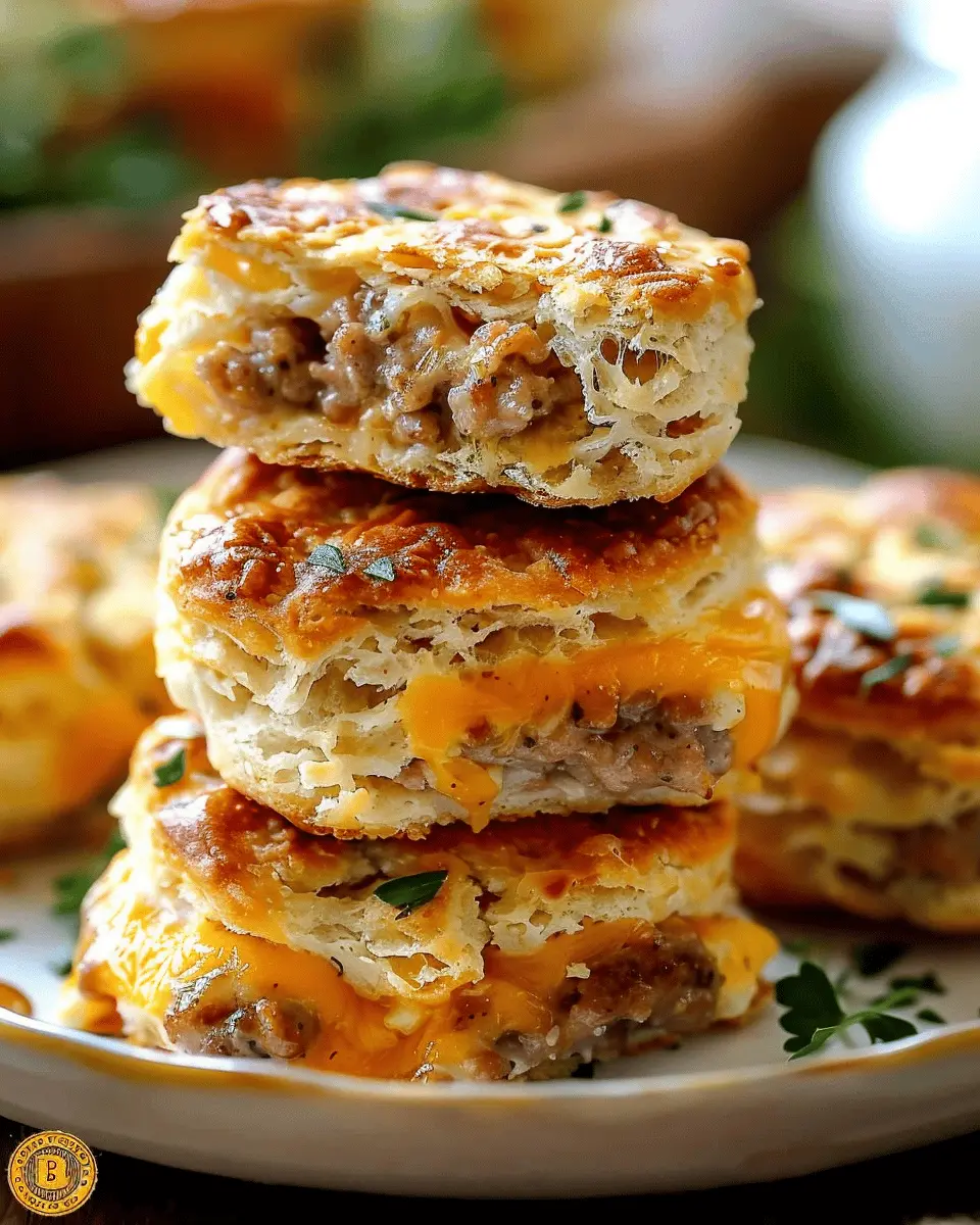 When hosting friends or family gatherings, Sausage Cheese Butter Swim Biscuits can shine as starters or snacks. Stack them with layers of chicken ham and a dollop of spicy mustard for an elevated mini sandwich. Alternatively, serve them as part of a charcuterie board with an assortment of cheeses and fresh veggies. You could even create a biscuit bar, letting guests customize their toppings with: