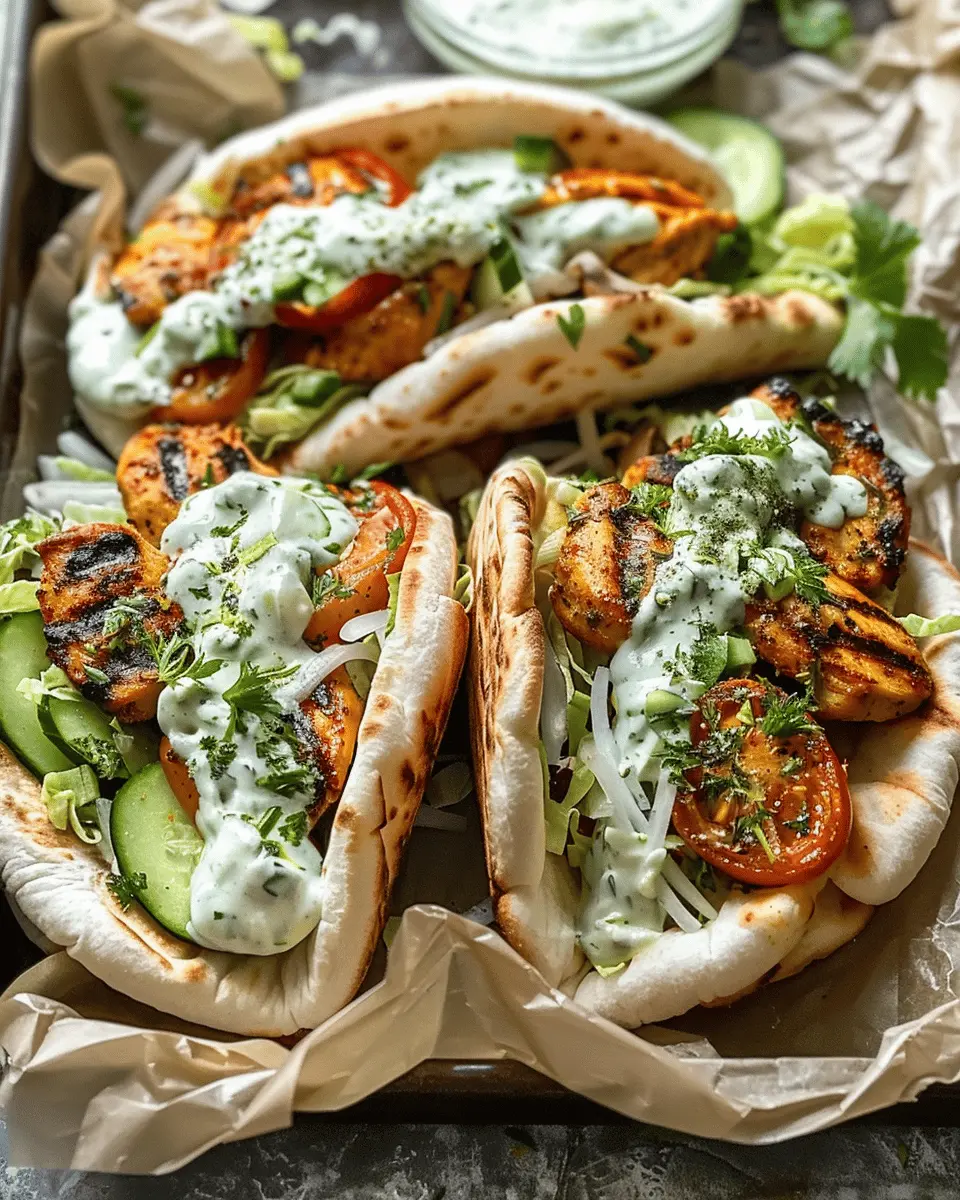 To fill the pitas, slice the chicken into strips and layer them generously in the warm pita. Top with a handful of that zesty herby ranch slaw, and if you’re feeling adventurous, add some slices of avocado or a sprinkle of feta cheese for added richness.