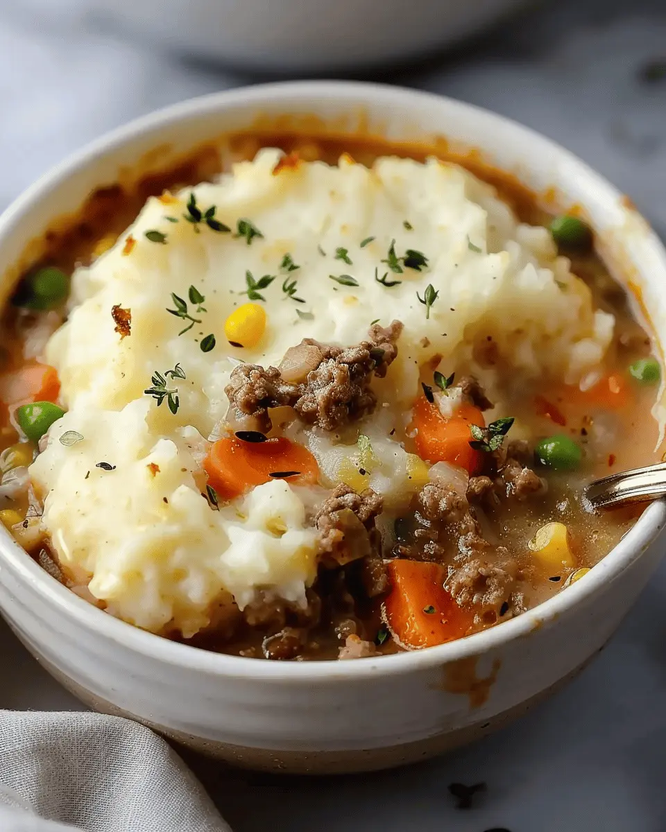 PrintShepherd’s Pie Soup Recipe: Comforting Twist with Turkey Bacon
