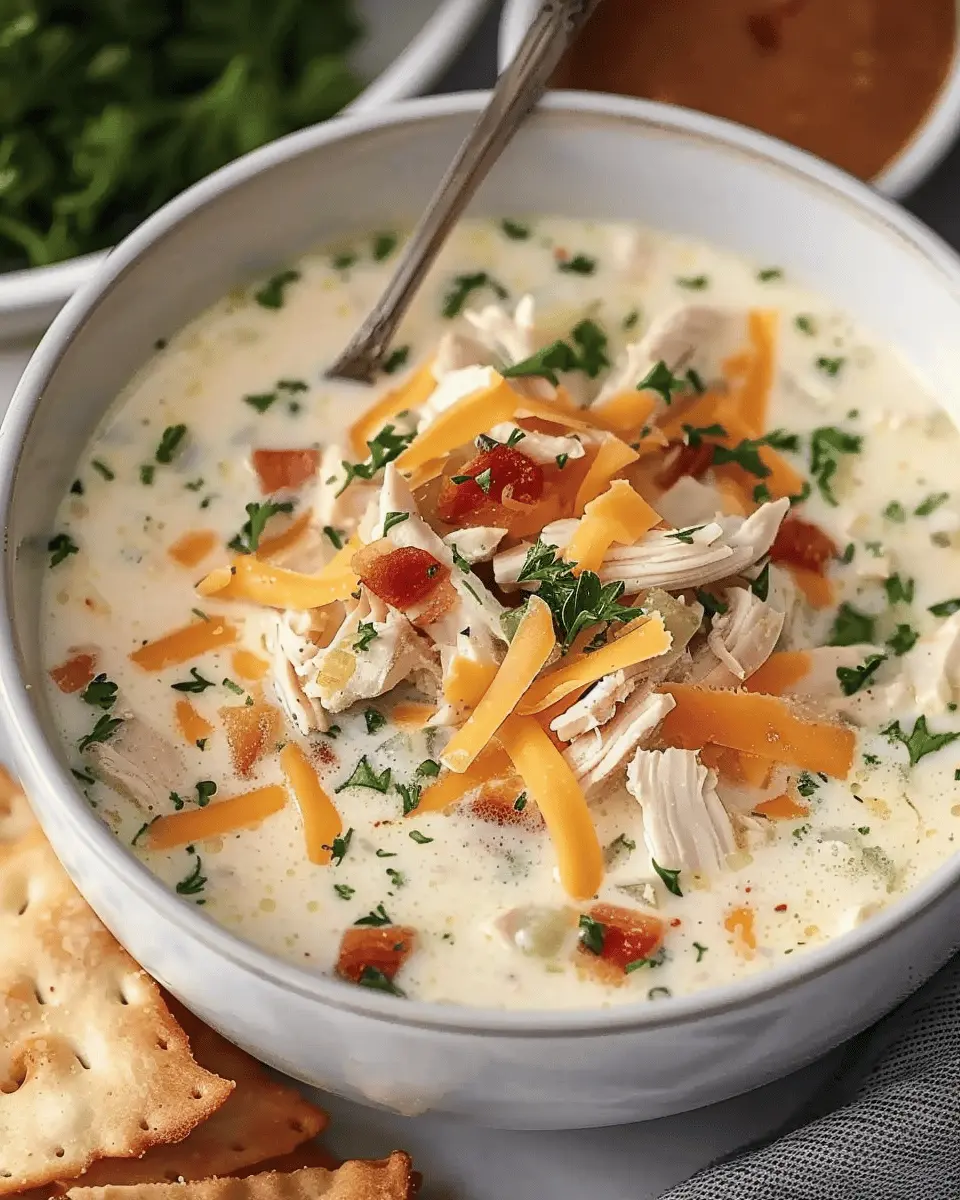 Consider this: according to a study by the Harvard T.H. Chan School of Public Health, home-cooked meals are often more nutritious than takeout. By making this creamy, comforting soup, you’re treating yourself to a delicious dish packed with healthy fats from cream cheese and proteins from chicken.