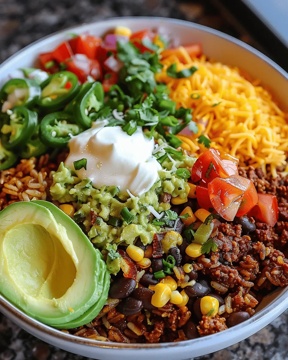 Now comes the fun part—assembling your taco rice bowls! This is where you get to be creative.